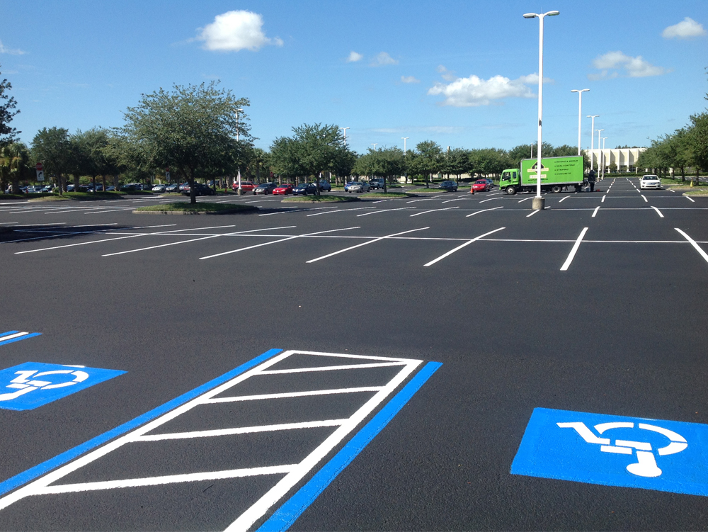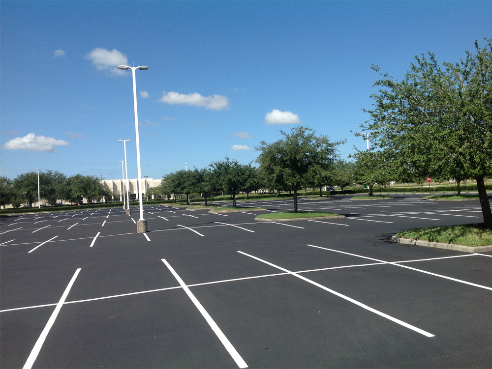 Parking Lot Services applies sealcoating products tailored for each particular situation to form a tough protective coating over your parking lot.